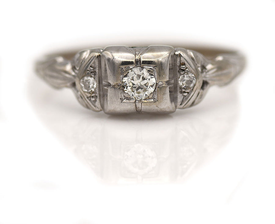 Dainty Art Deco .16 CTW Antique Engagement Ring with Side Stones