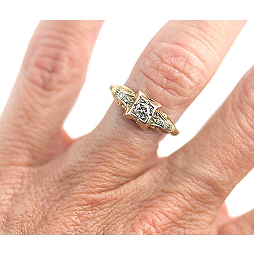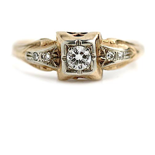 Mid Century .20 CTW 14 Karat Two Tone Vintage Diamond Engagement Ring