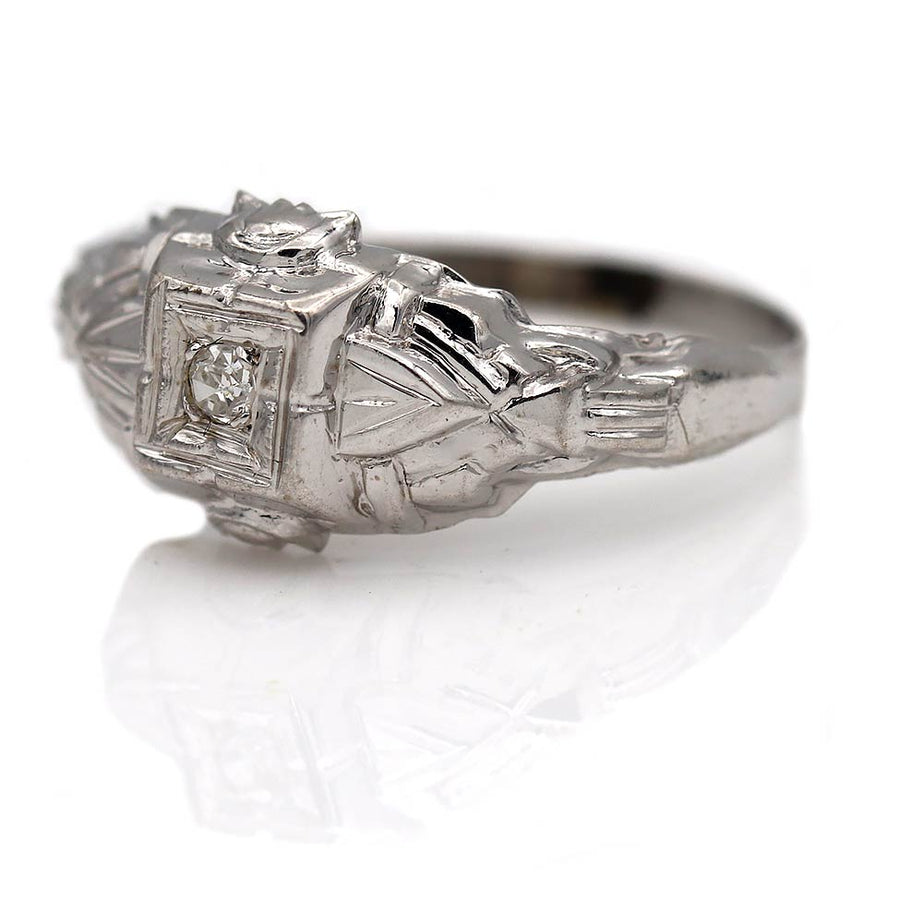 Petite Art Deco .05 Ct Vintage Diamond Engagement Ring Filigree Engravings