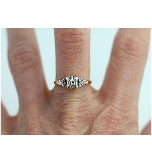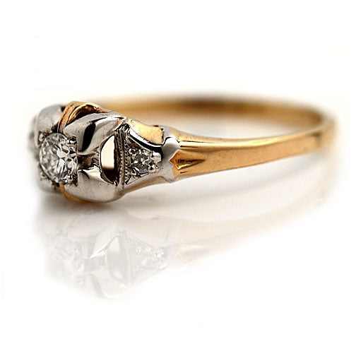 Vintage .20 CTW 14 KT Two Tone Yellow Gold Diamond Engagement Ring with Side Stones