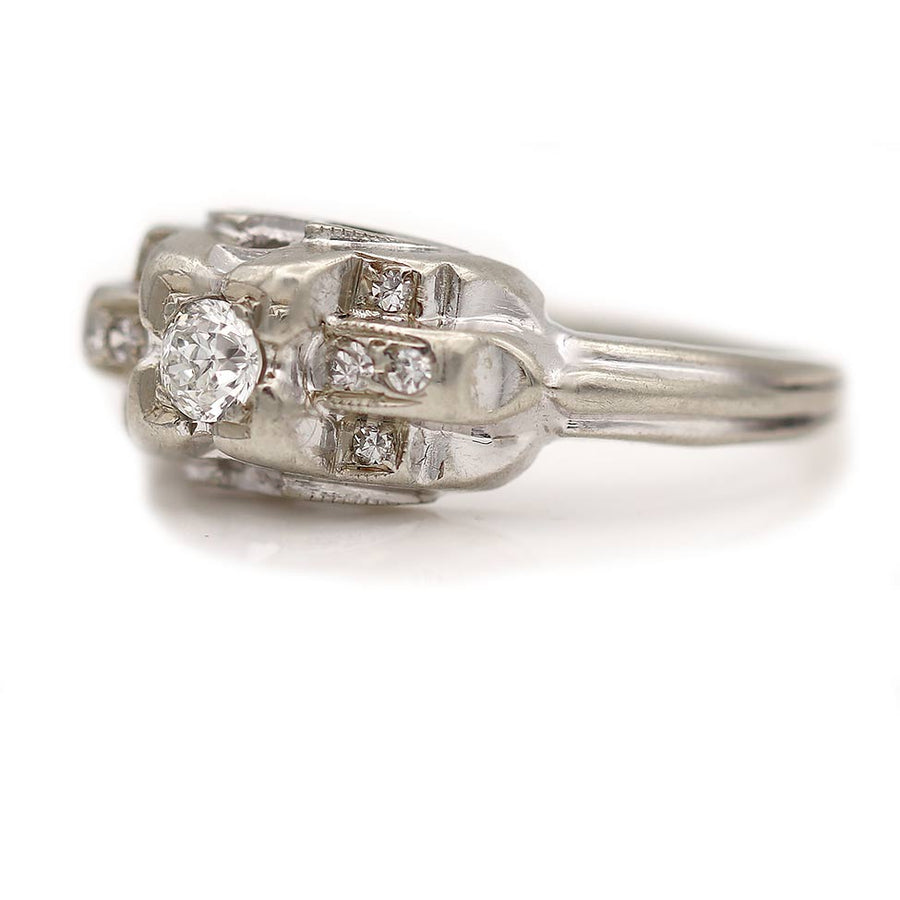 Vintage .31 CTW Old European Cut Diamond Vintage Engagement Ring with Side Stones
