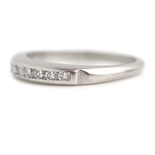 Take a trip back in time with a timeless vintage wedding band we call Anastasia. The Anastasia band is an authentic vintage wedding band circa 1950s. The ring features 9 channel set single cut diamonds. Crafted in platinum. In very good condition. The perfect complement with your antique engagement ring or to stack with other bands!