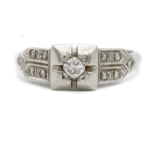 Antique .33 CTW Petite Square Vintage Diamond Ring with Side Stones