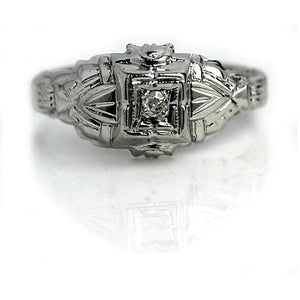 Petite Art Deco .05 Ct Vintage Diamond Engagement Ring Filigree Engravings