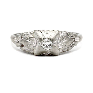 Antique .15 CTW Floral White Gold Vintage Diamond Engagement Ring