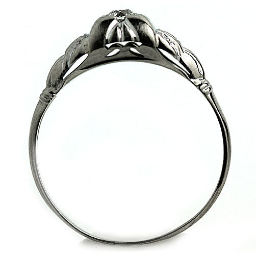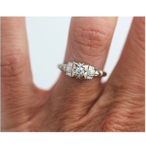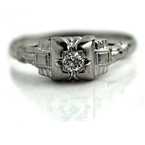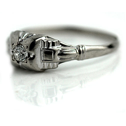 Art Deco .12 CTW Mine Cut Diamond Antique Engagement Ring with Engraved Band