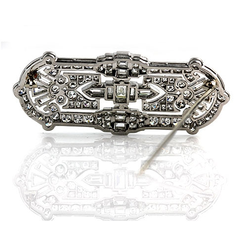 Art Deco Platinum Diamond Brooch 6.50 Carat