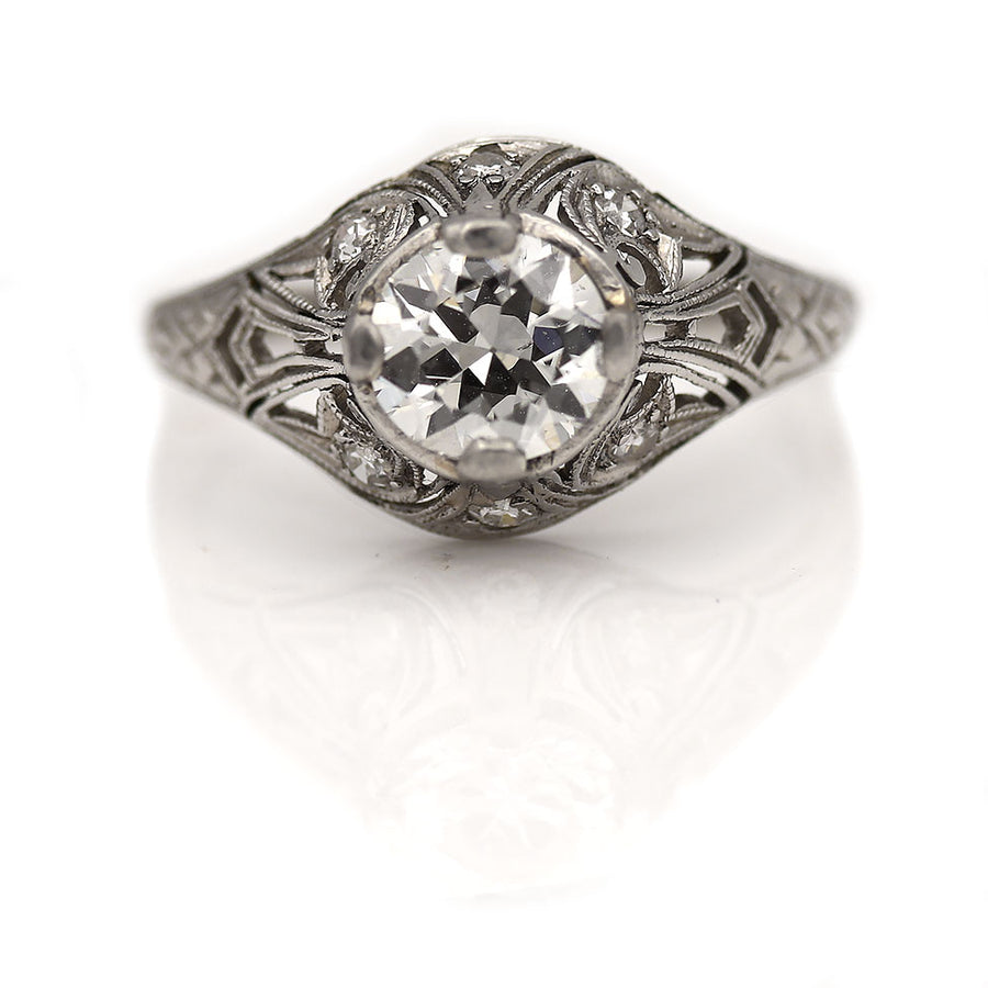 Art Deco .97 CTW Intricate Vintage Diamond Engagement Ring GIA I/SI1