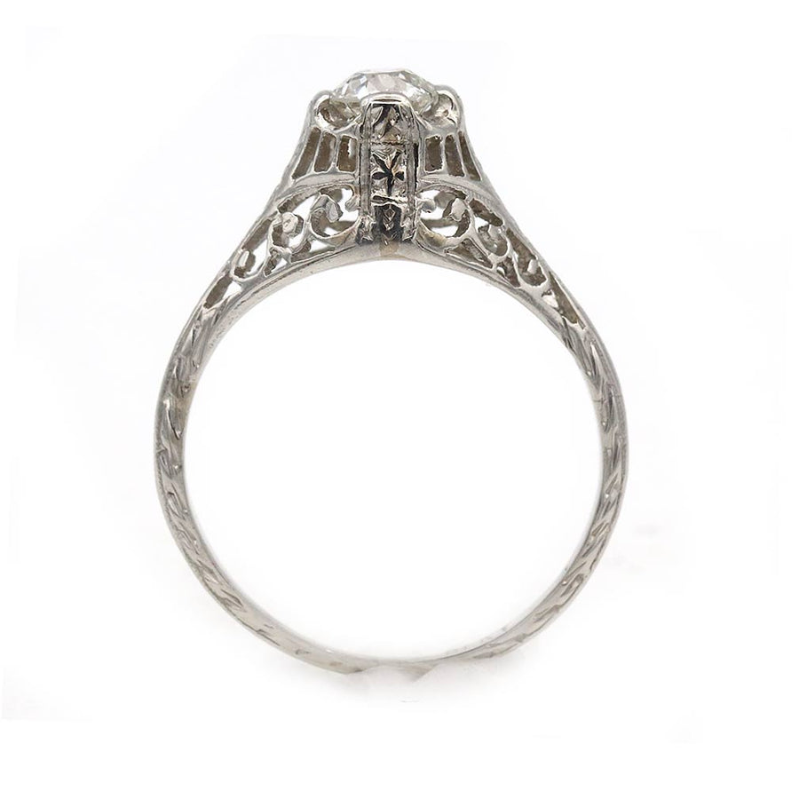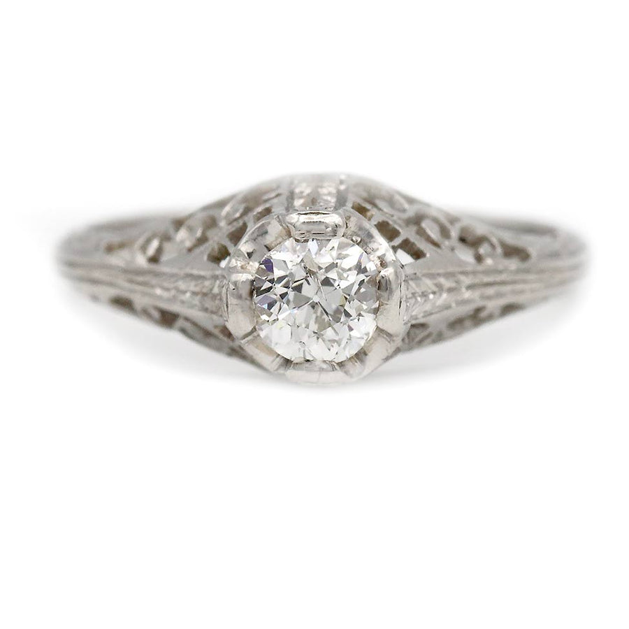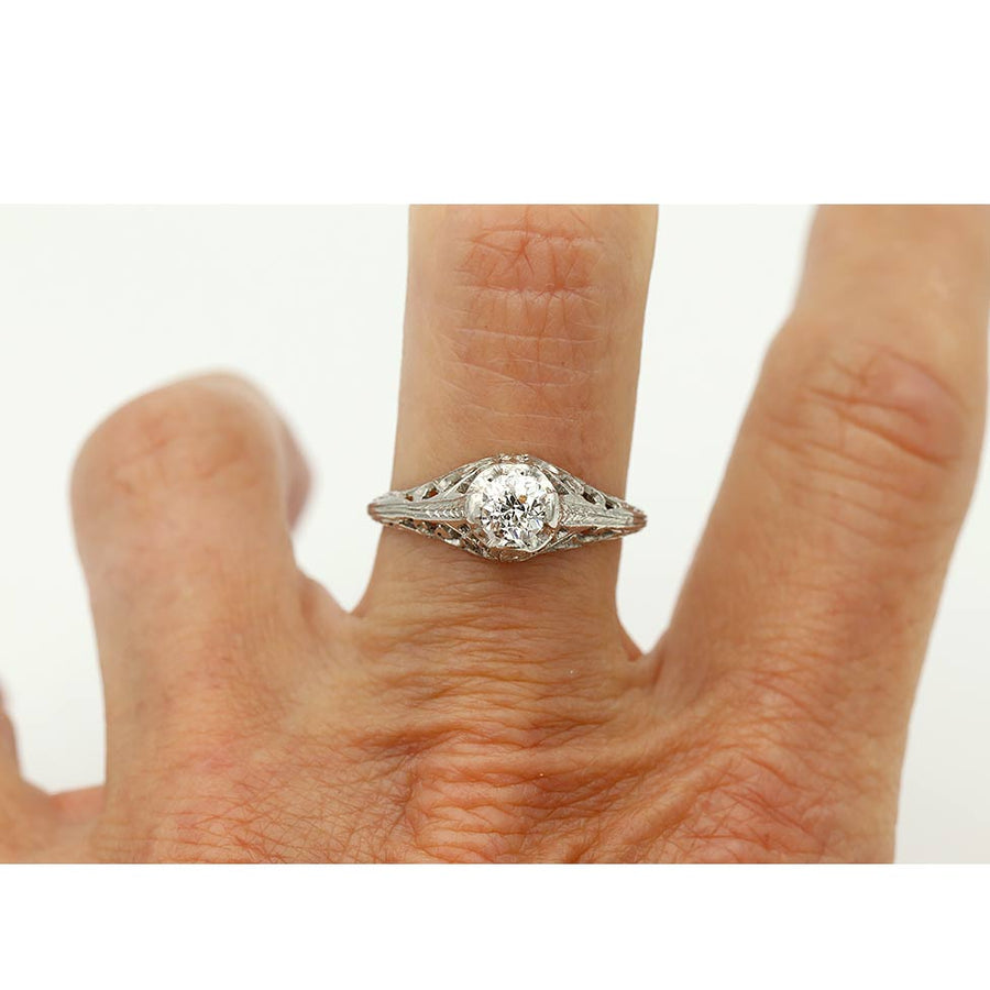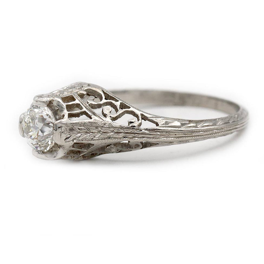 Unique Vintage .35 Ct Filigree Solitaire Art Deco Engagement Ring 1930s