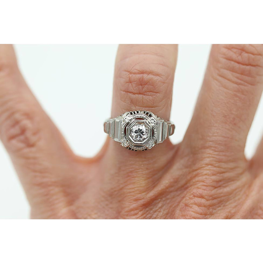 Vintage Octagonal Frame .30 Ct Old European Cut Diamond Unique Engagement Ring