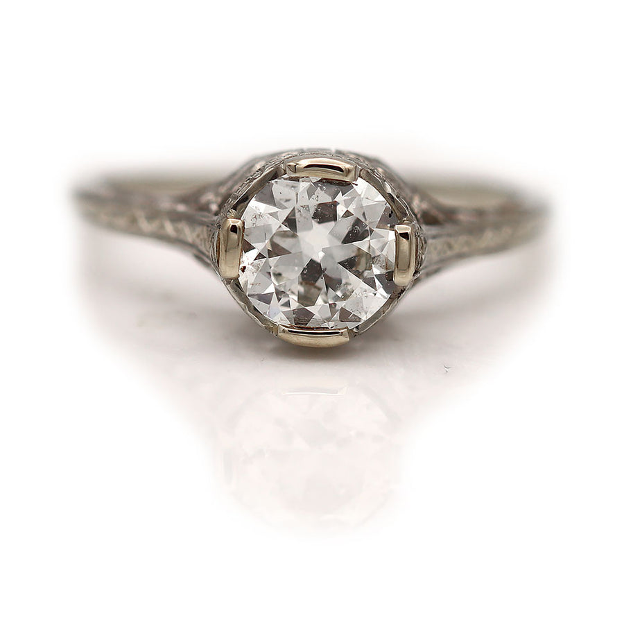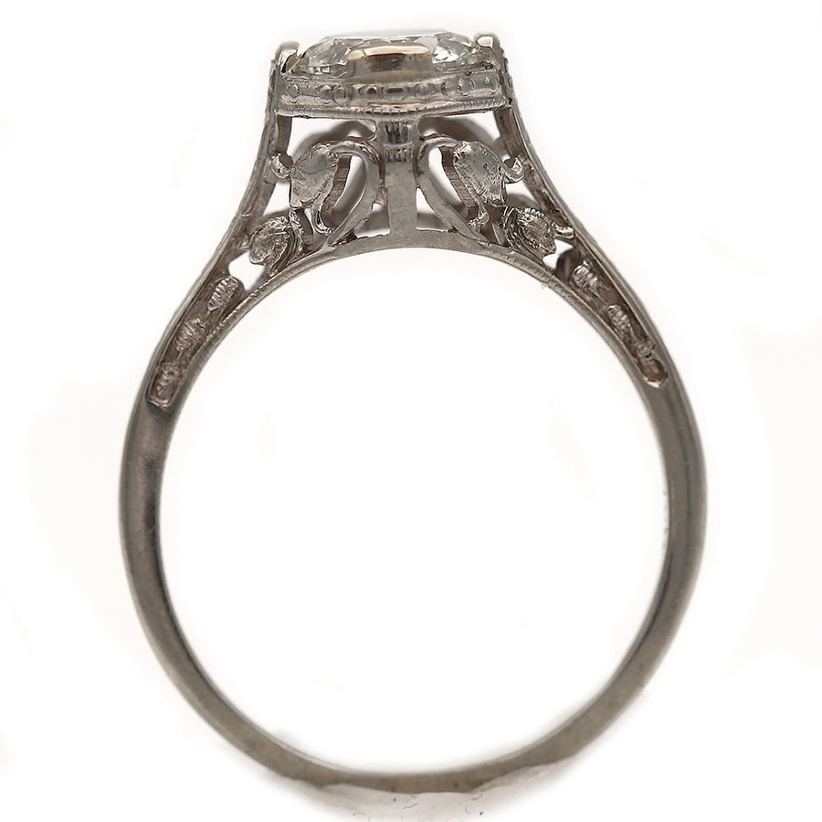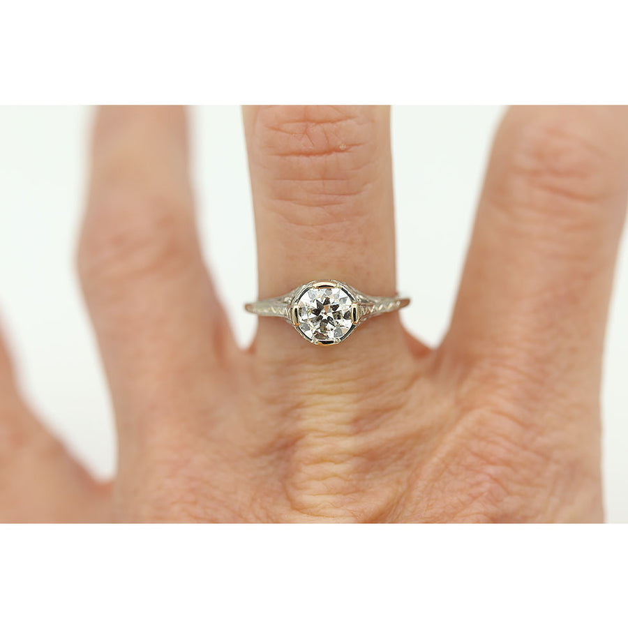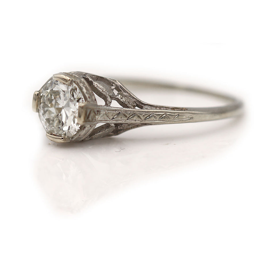 Art Deco .91 CTW European Cut Diamond Solitaire Antique Engagement Ring with Filigree