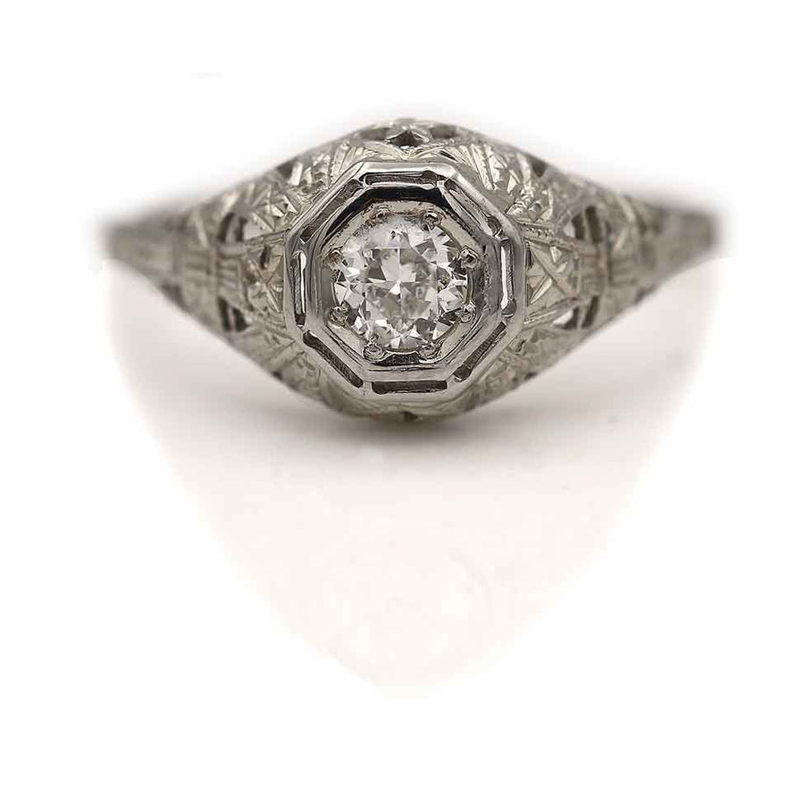 Art Deco .35 CTW Old European Cut Diamond Filigree Solitaire Vintage Engagement Ring