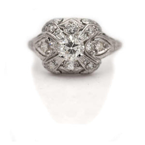 Art Deco .70 CTW Platinum Euro Cut Diamond Antique Engagement Ring