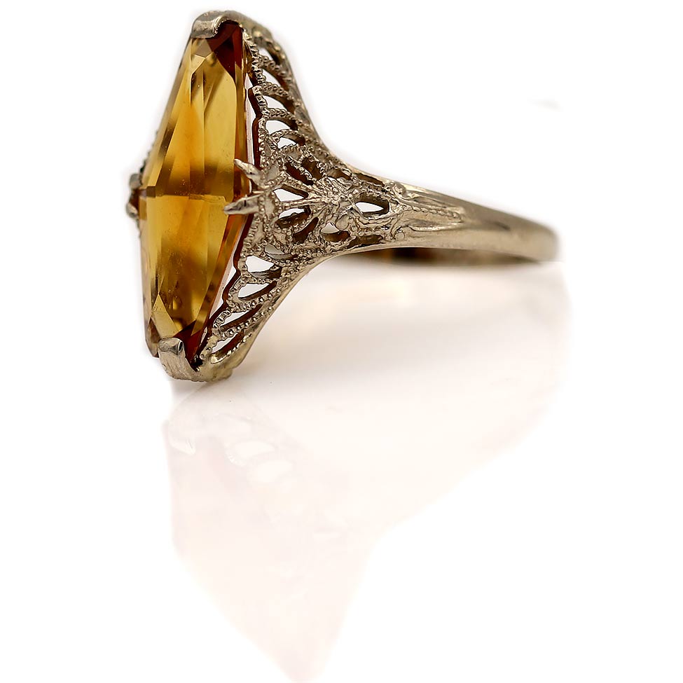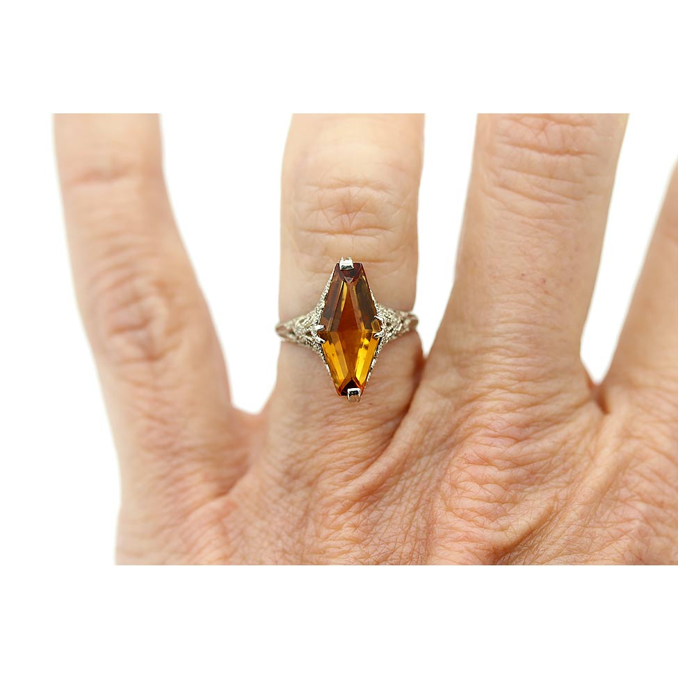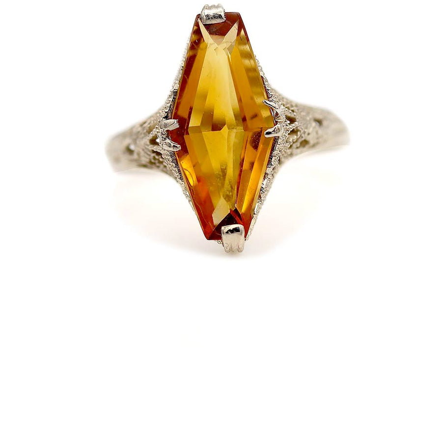 1.50 Carat Art Deco Lozenge Shape Citrine Engagement Ring