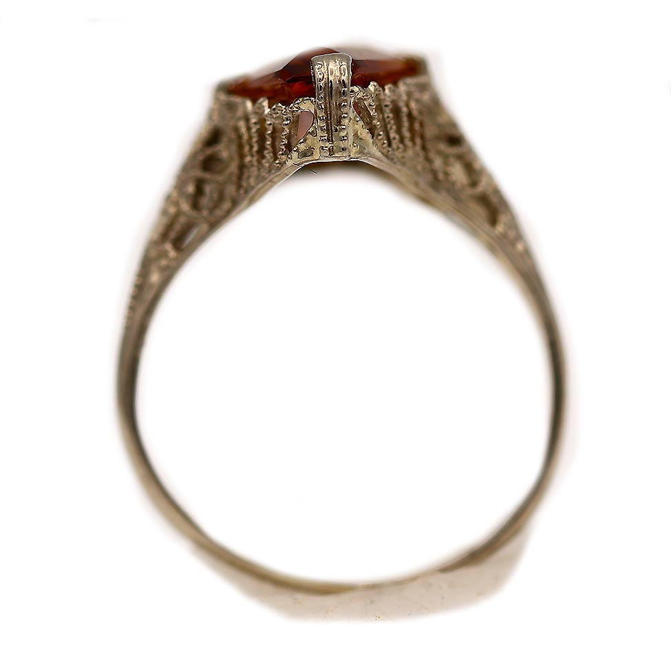 The Hubba ring is an authentic vintage Art Deco gemstone ring, circa 1930s, featuring a natural vintage lozenge shape citrine weighing 1.50 carat. Beautifully crafted in 14 kt white gold, and accentuated with delicate milgrain engravings and open metal work. A very pretty Art Deco gemstone piece, in very good condition.