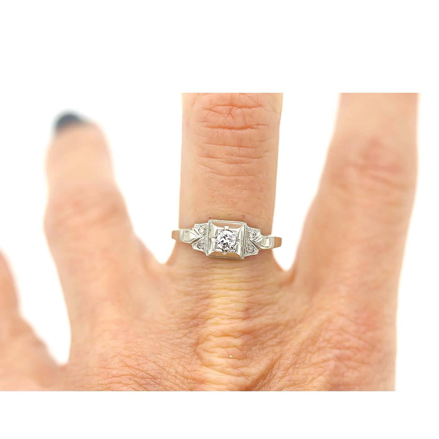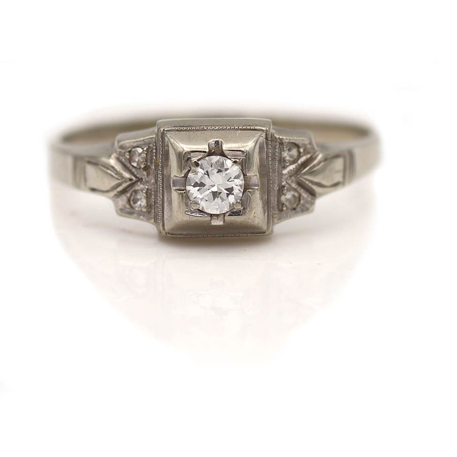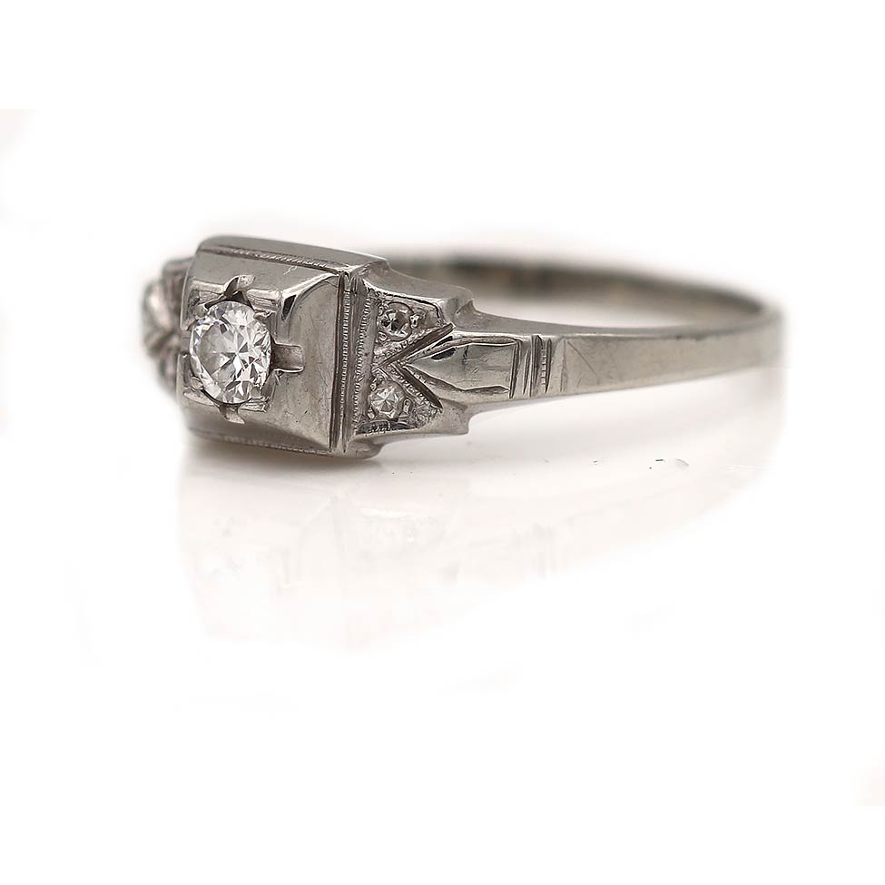 1940s Vintage Diamond Engagement Ring 18 Kt White Gold .15ct F-VS2