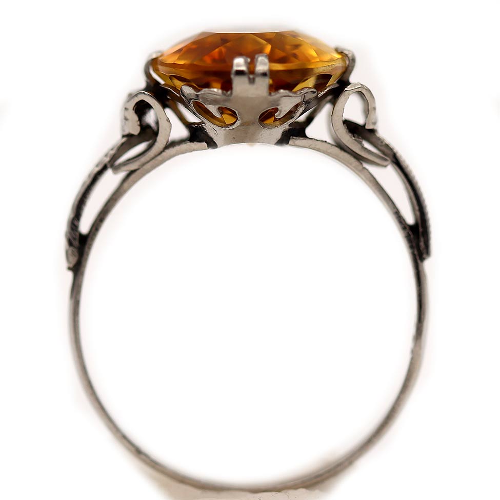The Hubka ring is an authentic vintage gemstone engagement ring, circa 1930s, featuring a natural vintage oval cut citrine weighing 3.00 carat. Beautifully crafted in 14 kt white gold and accentuated with delicate filigree and milgrain engravings, this is a beautiful Art Deco gemstone piece, in very good condition.