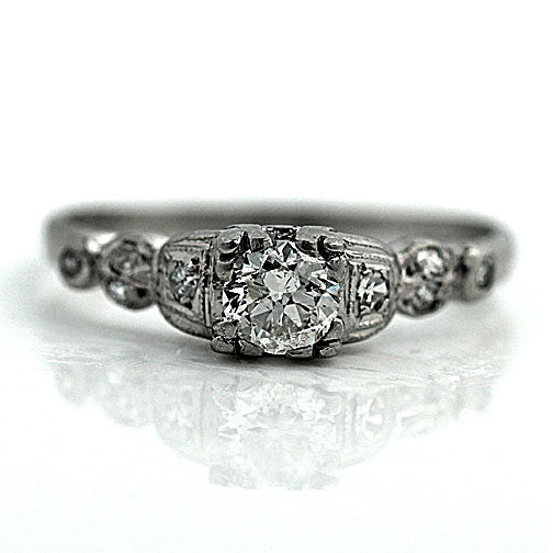 Antique .51 CTW Platinum European Cut Art Deco Engagement Ring