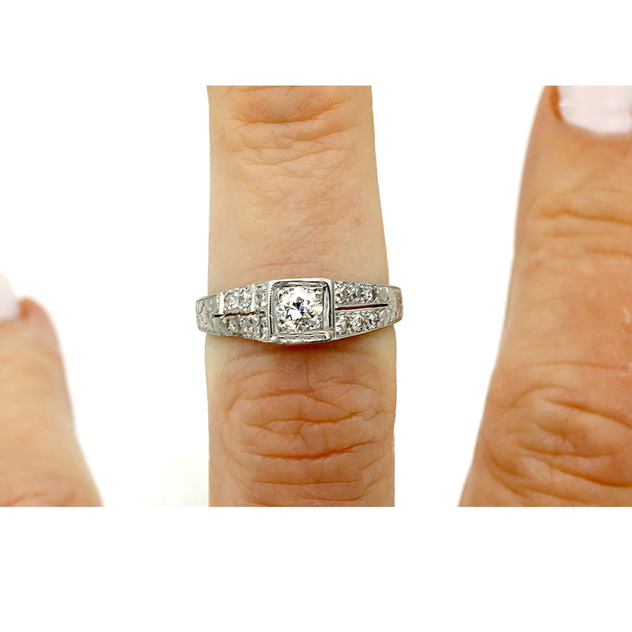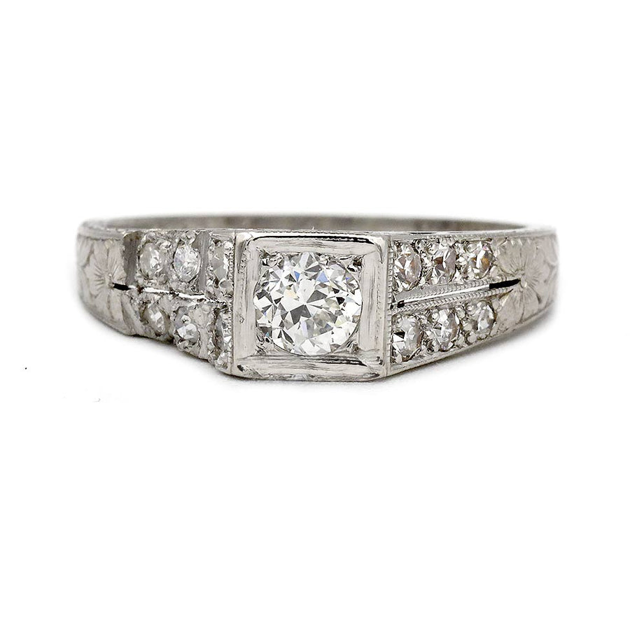 Antique .59 CTW Old European Cut Diamond Art Deco Engagement Ring Floral Engravings