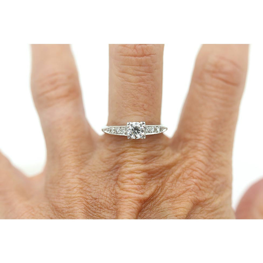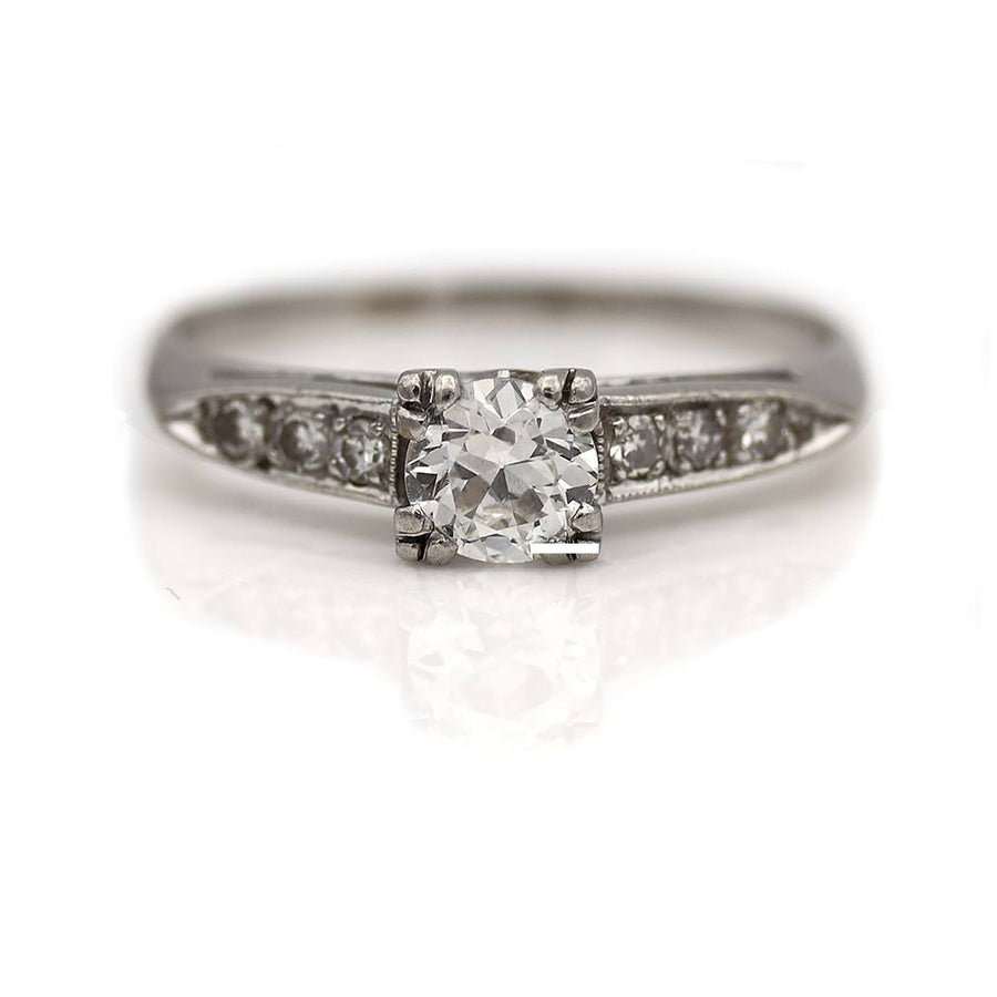 Antique .77 CTW Trefoil Prong Vintage Engagement Ring with Side Diamonds