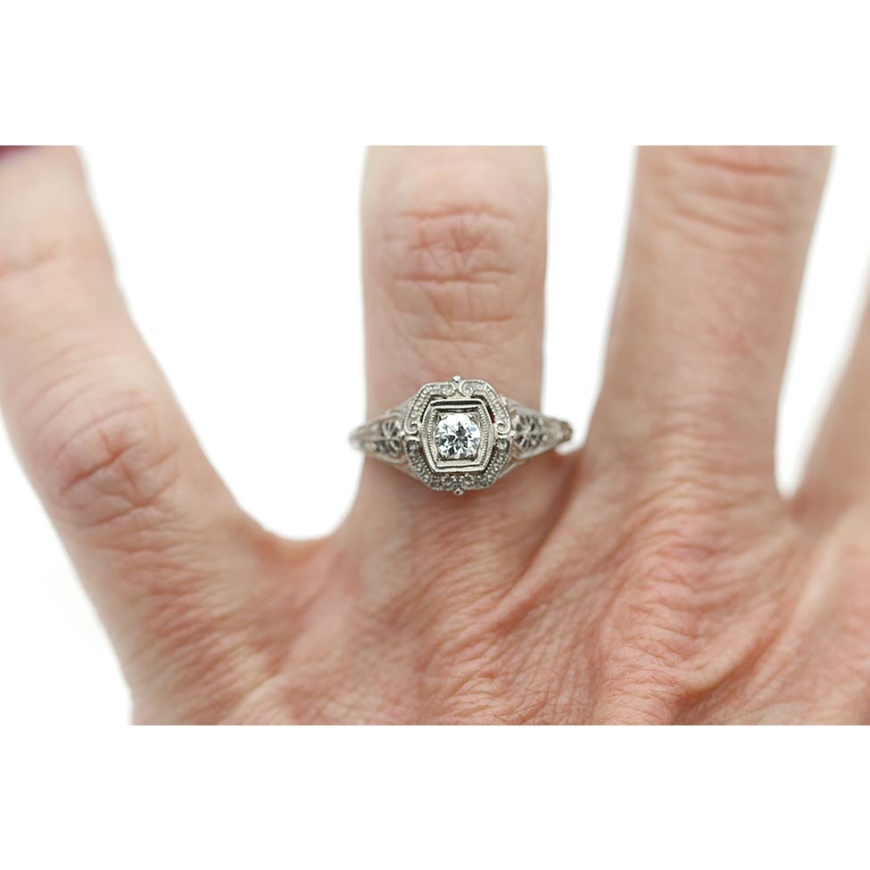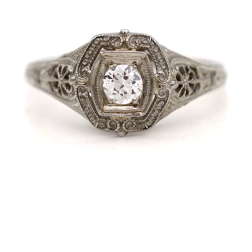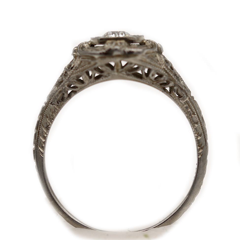 Art Deco 0.25 Ct Old European Cut Diamond Filigree Solitaire Engagement Ring