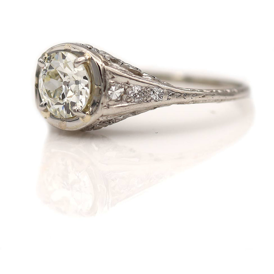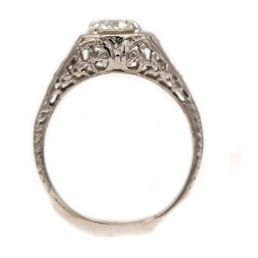 Art Deco 1.14 CTW Old Mine Cut Diamond 18 Karat White Gold Vintage Engagement Ring GIA K/SI2