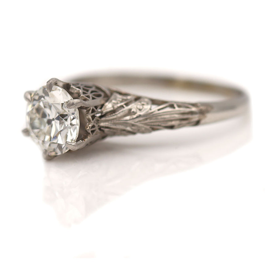 Art Deco 1.17 CTW Solitaire Old European Cut Antique Diamond Engagement Ring GIA I/VS2