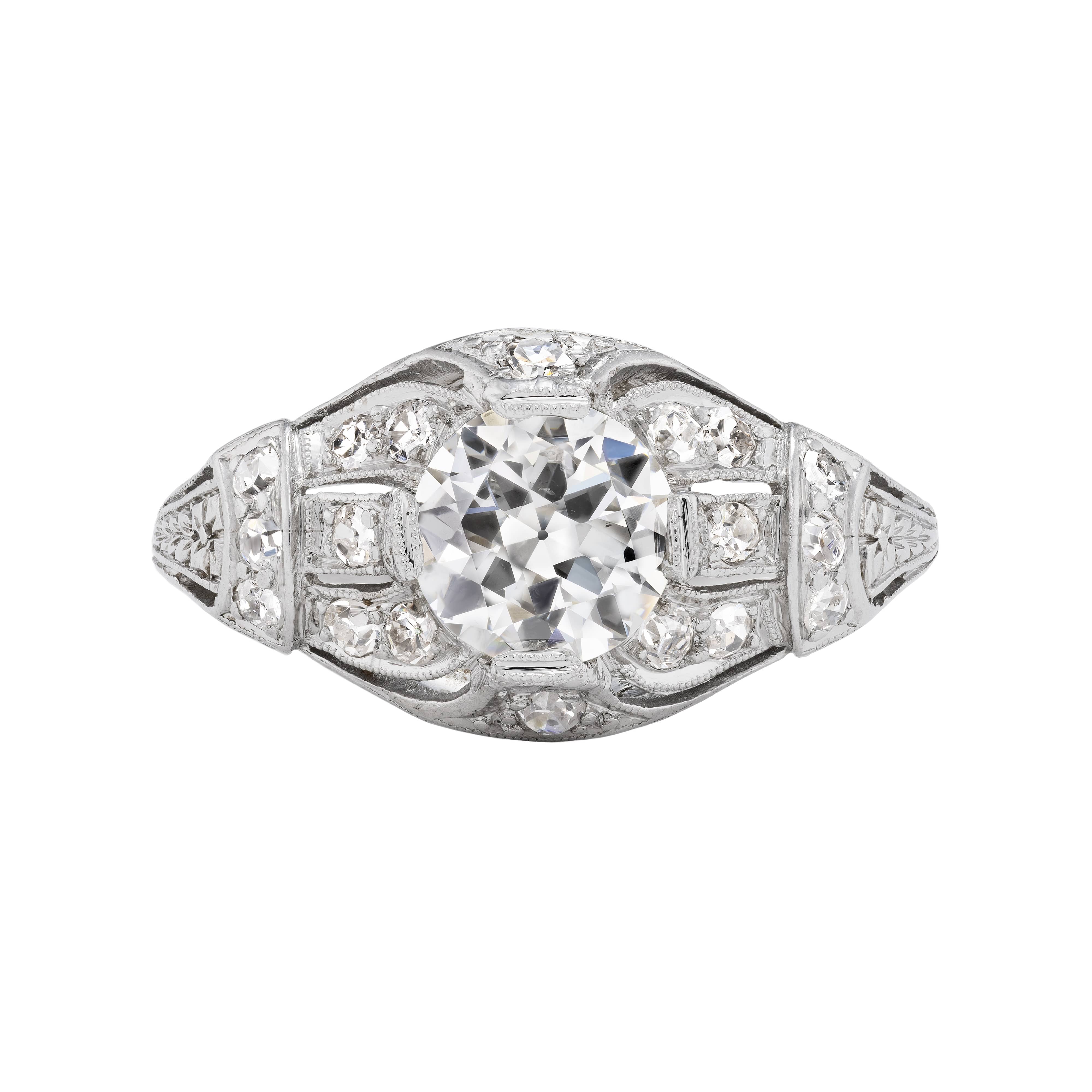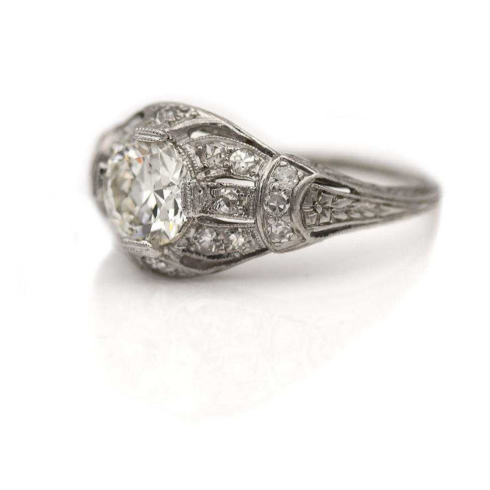 Art Deco 1.42 CTW Old European Cut Diamond Platinum Antique Engagement Ring GIA J/SI2