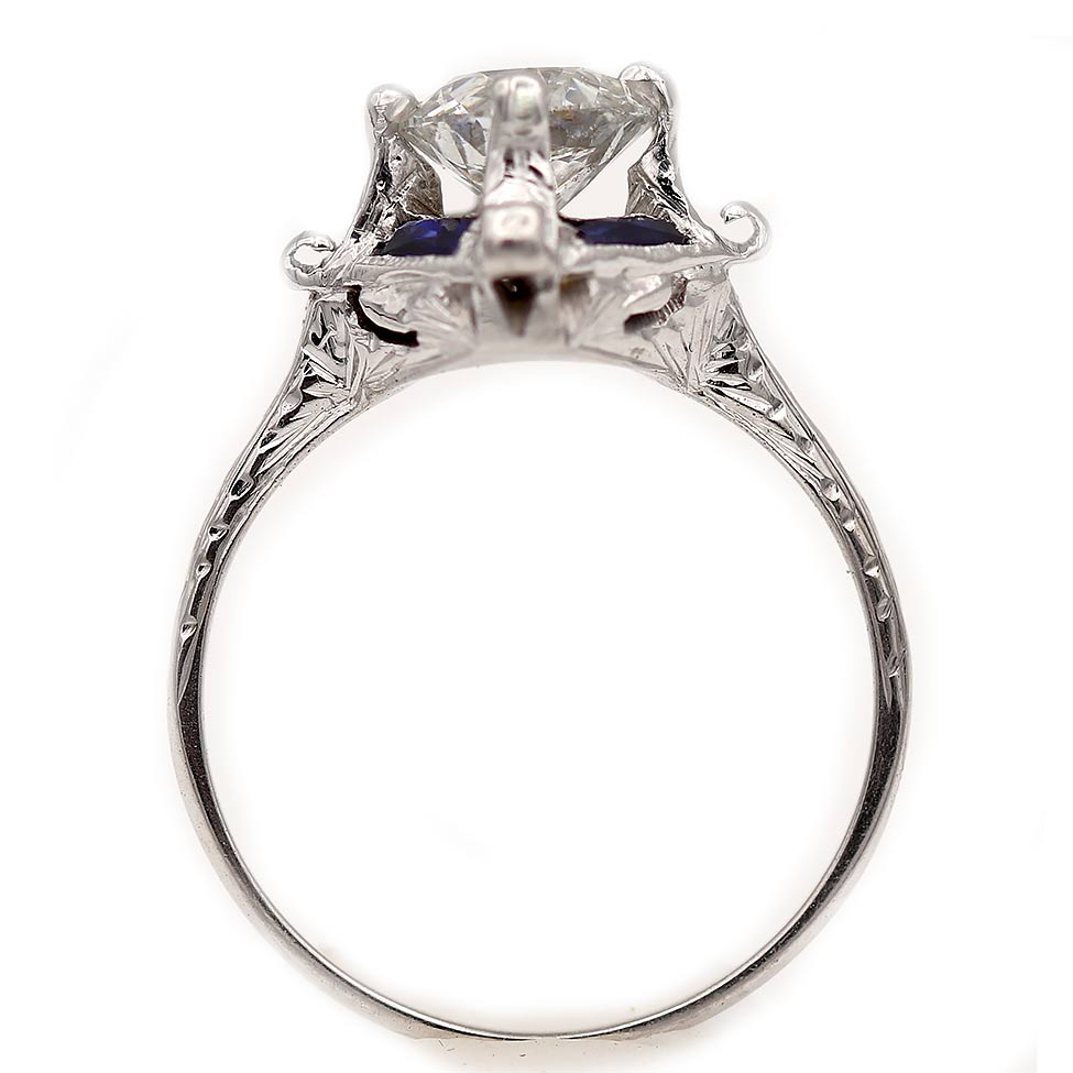 Art Deco 1.56 CTW Old European Cut Diamond Sapphire Vintage Engagement Ring GIA F/I1