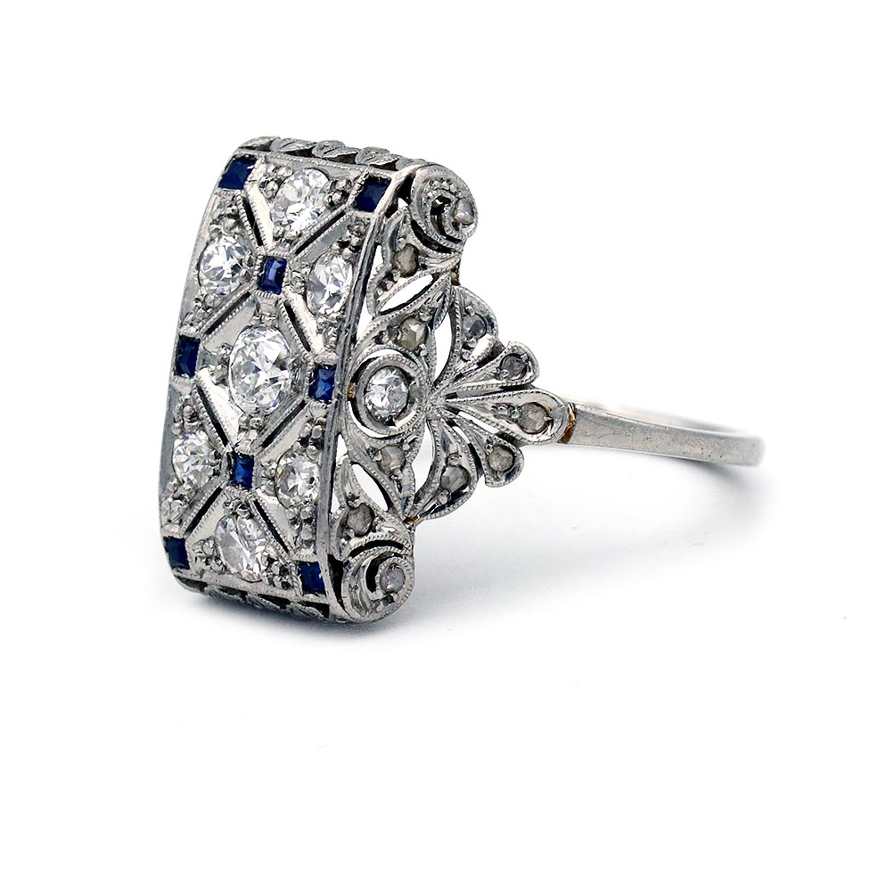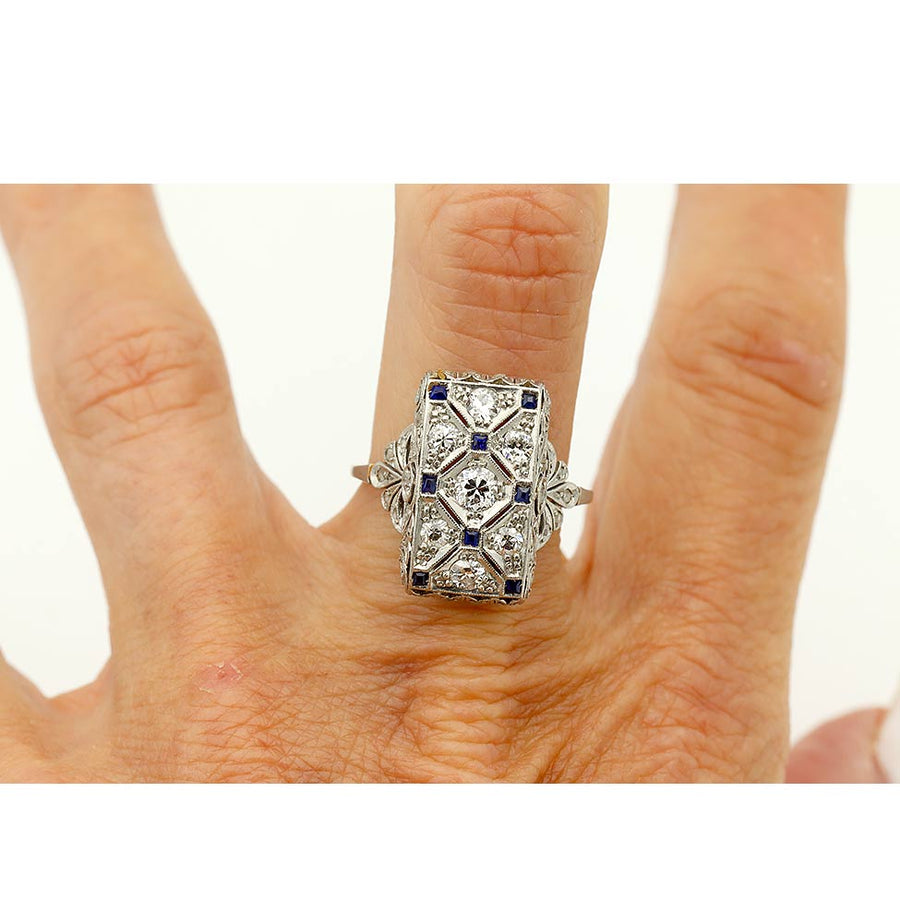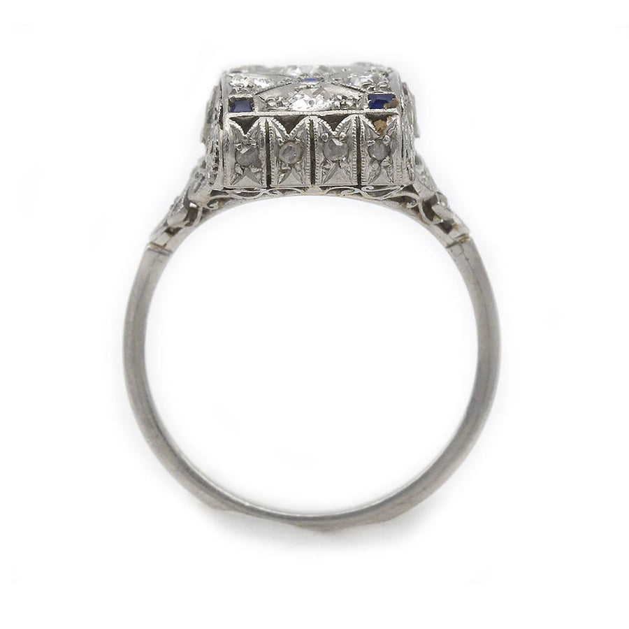 Art Deco 1.60 CTW Diamond & Square Cut Sapphire Vintage Cocktail Ring