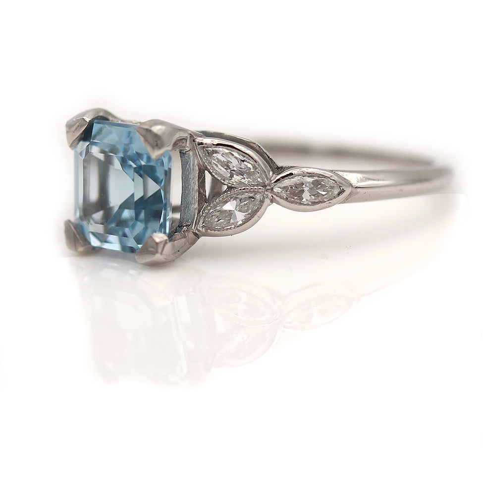 Art Deco 1.82 Aquamarine & Diamond Split Shank Gemstone Engagement Ring