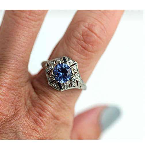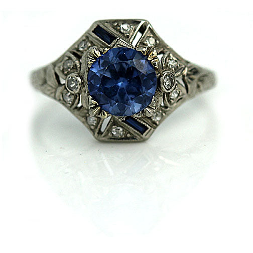 Art Deco 1.90 CTW Blue Gemstone Sapphire & Diamond Gemstone Engagement Ring