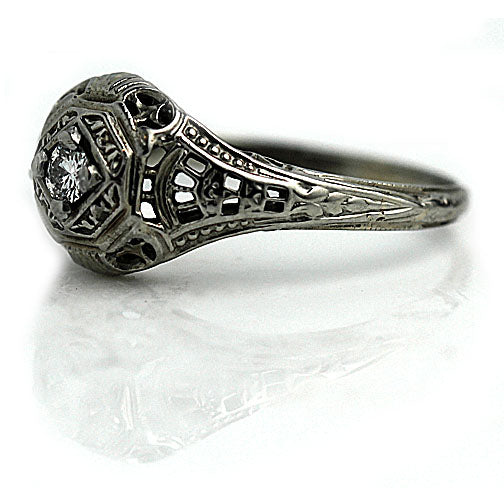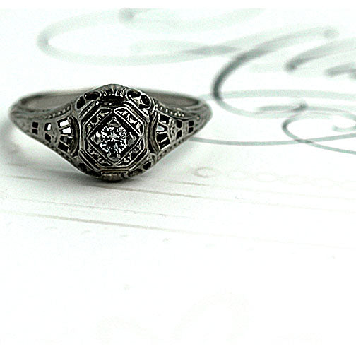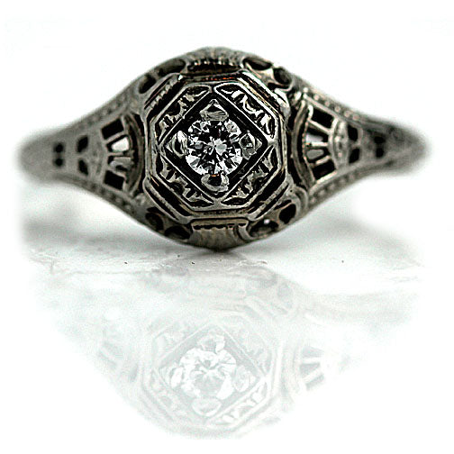 Art Deco .15 CTW Octagon European Cut Antique Diamond Engagement Ring