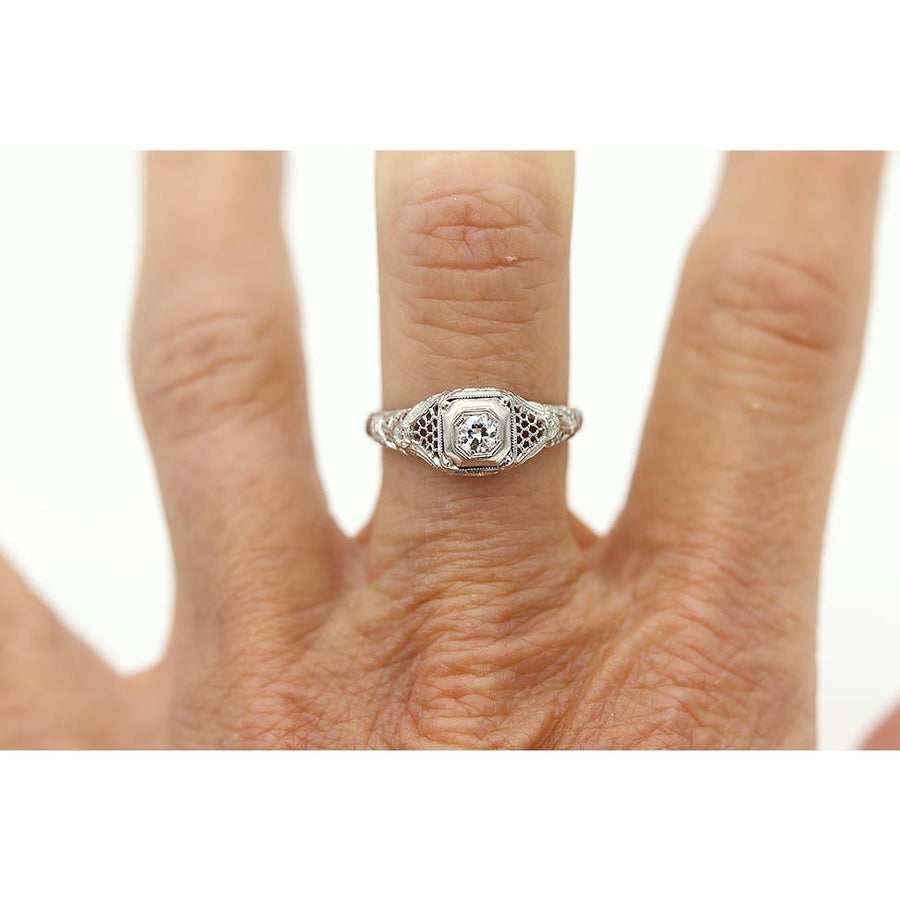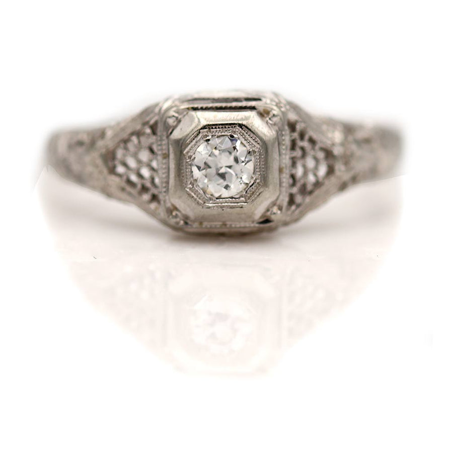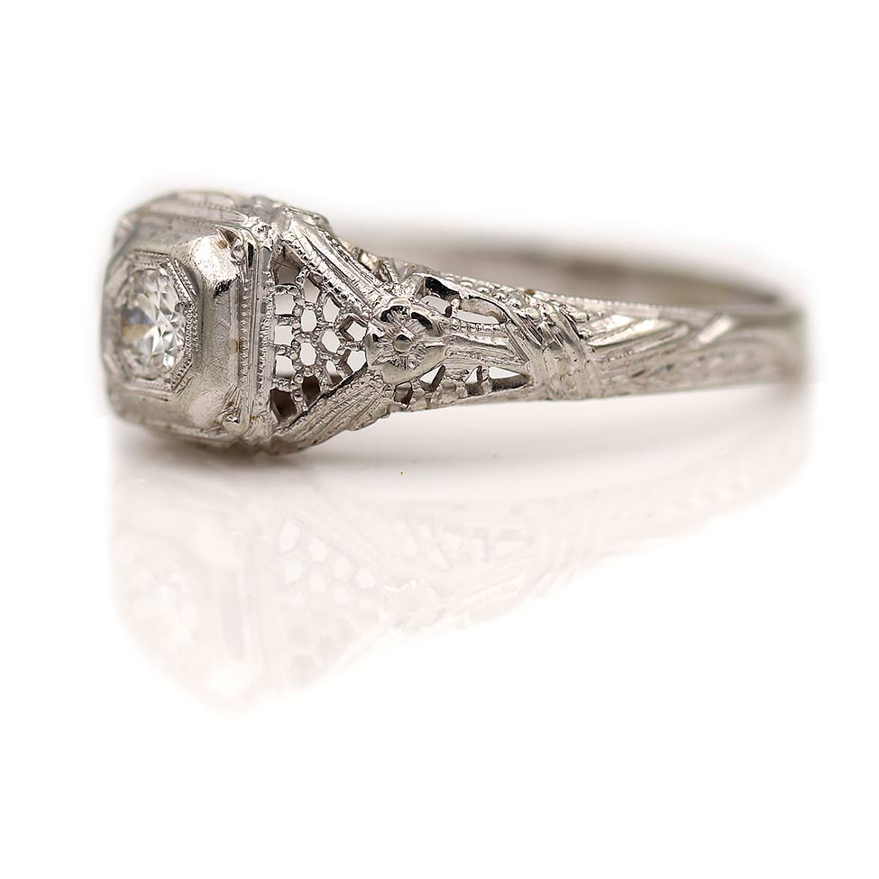 Art Deco .15 CTW Old European Cut Antique Engagement Ring with Open Metal Work