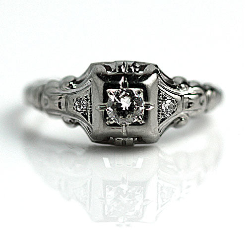 Art Deco .19 CTW Old European Cut Diamond Vintage Engagement Ring