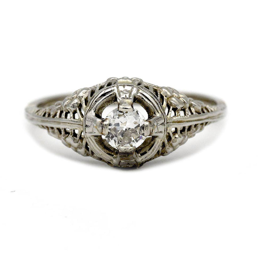 Art Deco .20 Ct 14 Karat White Gold Solitaire Diamond Antique Engagement Ring