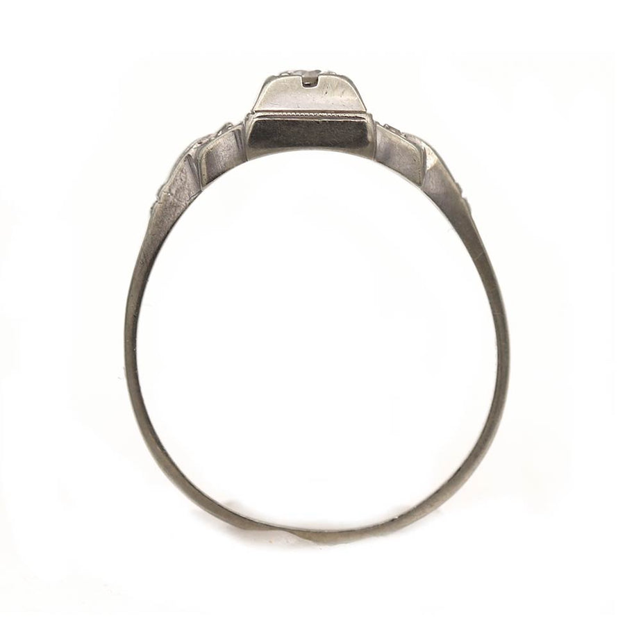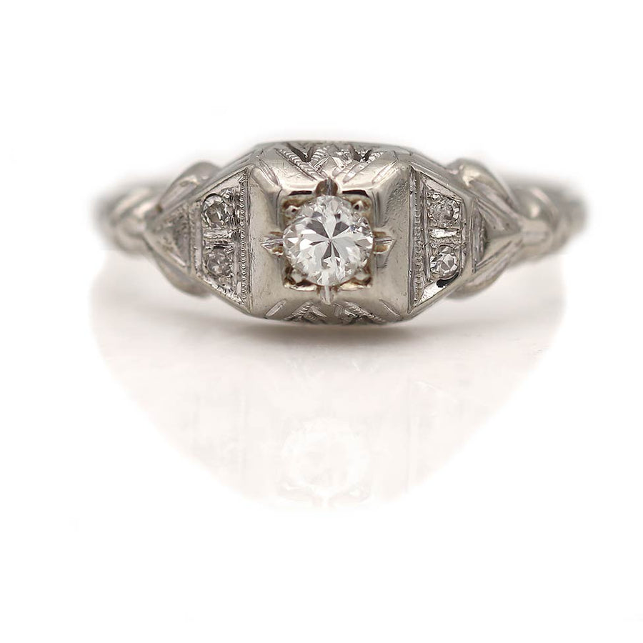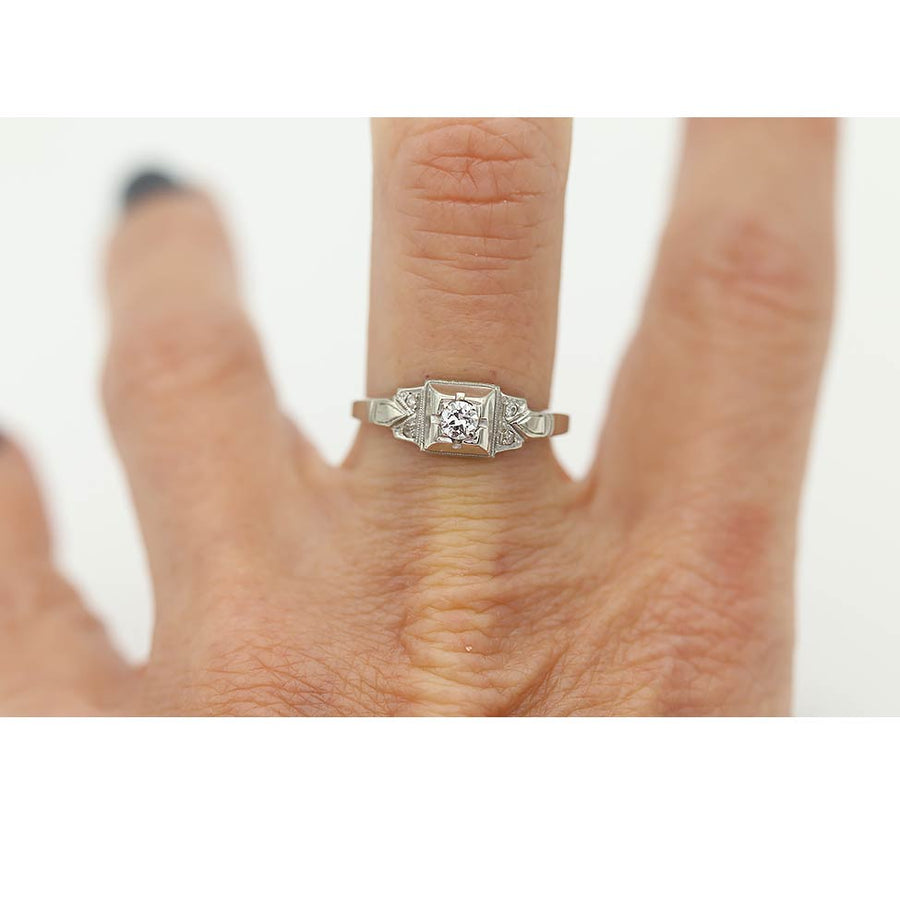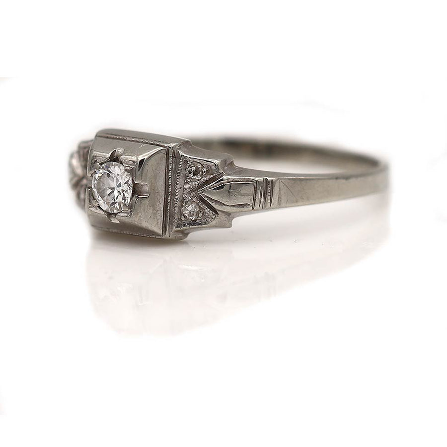 Art Deco .25 CTW Transitional Cut Diamond 14 Karat White Gold Antique Engagement Ring