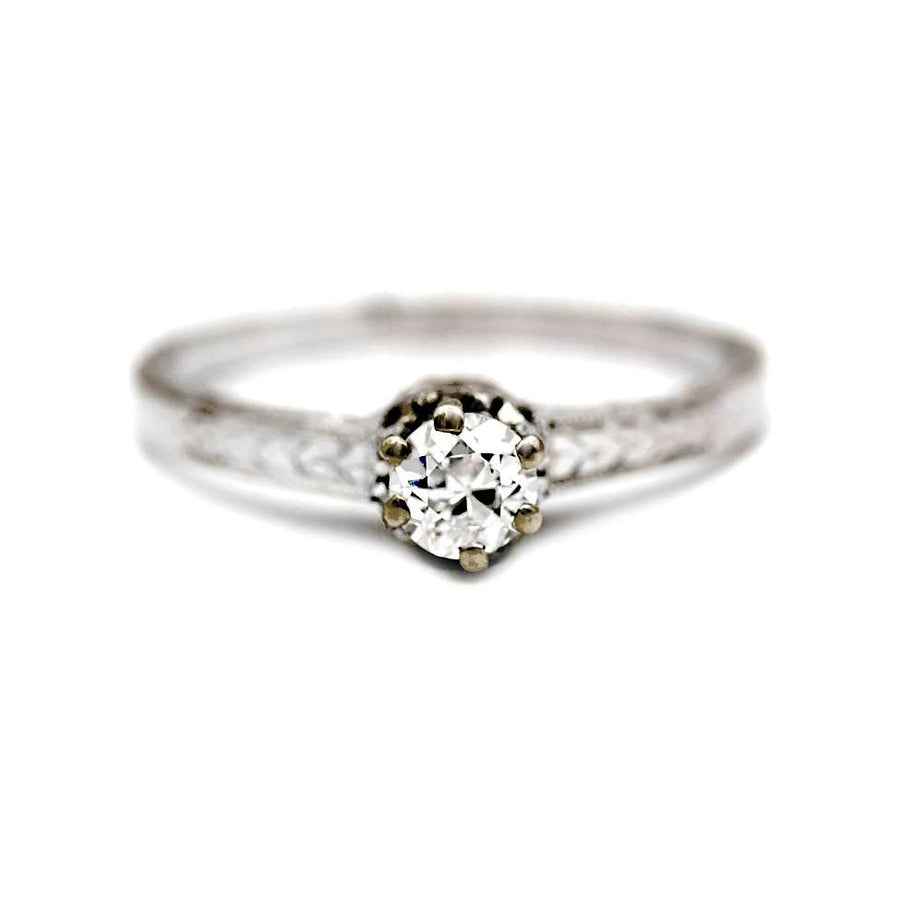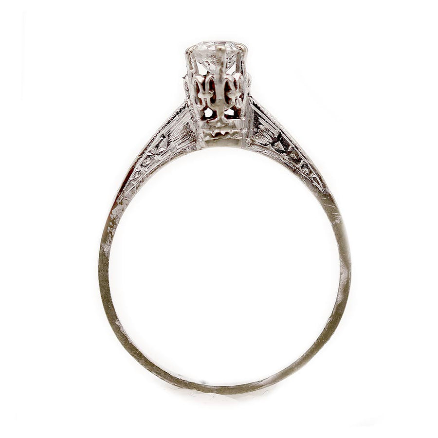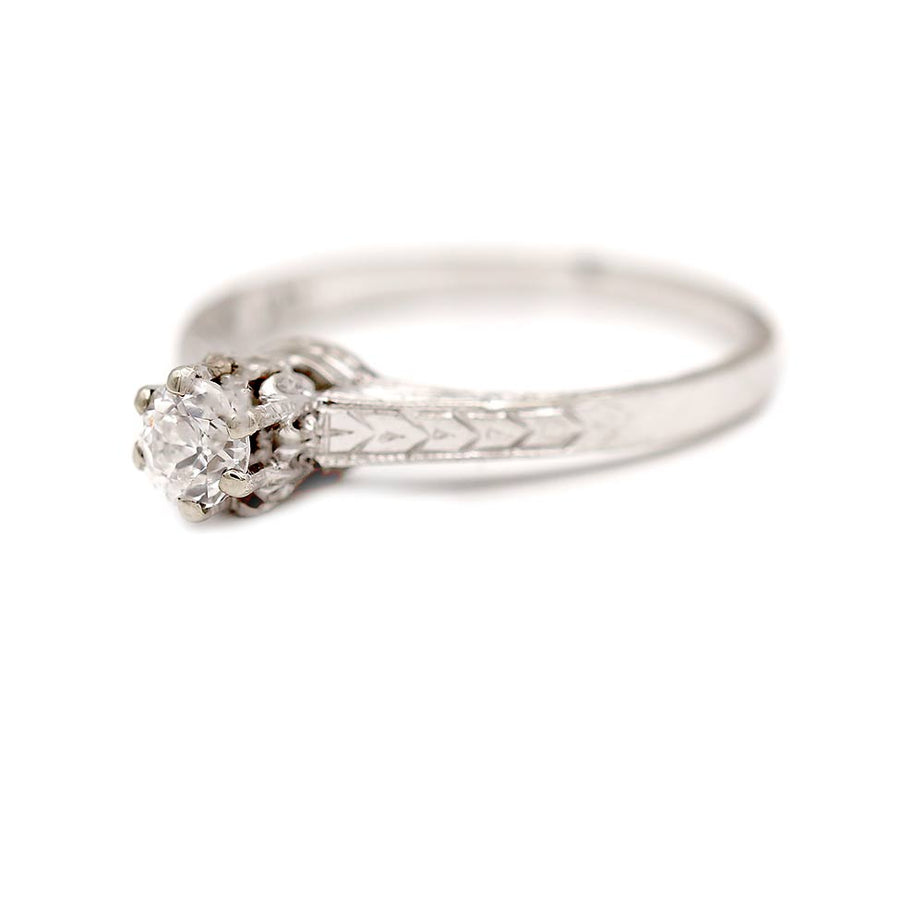 Art Deco .30 CTW Old Mine Cut Diamond 14 Karat White Gold Solitaire Vintage Engagement Ring