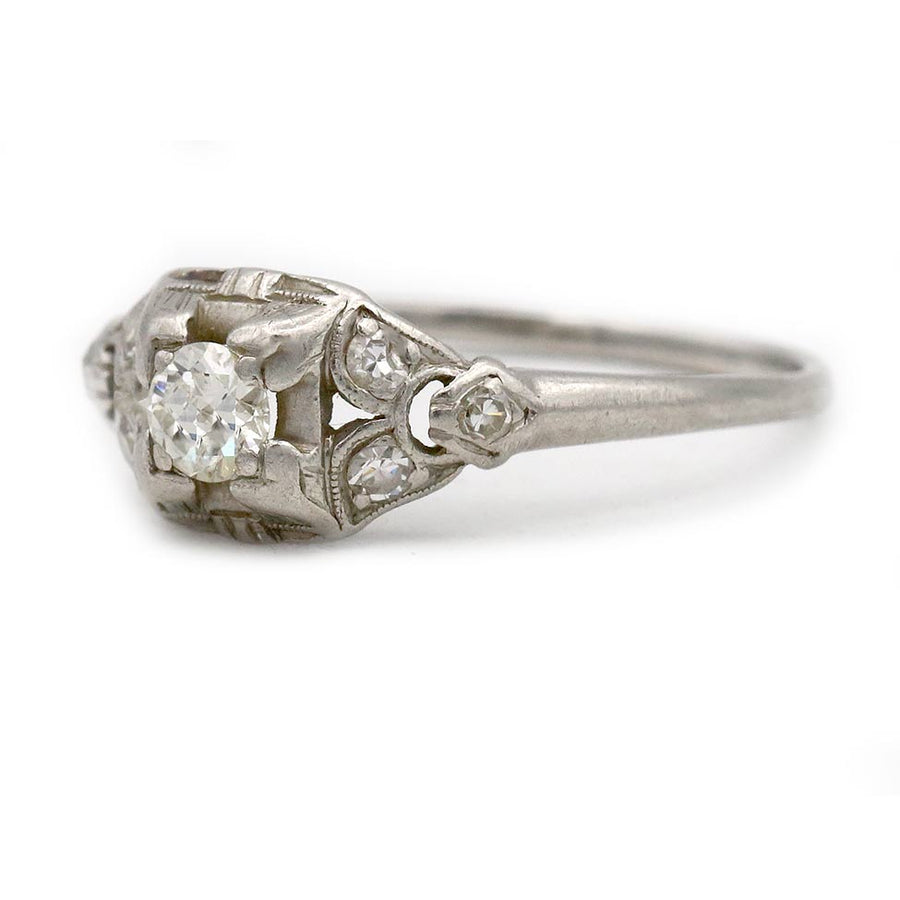 Art Deco .32 CTW Platinum Split Shank Antique Diamond Engagement Ring