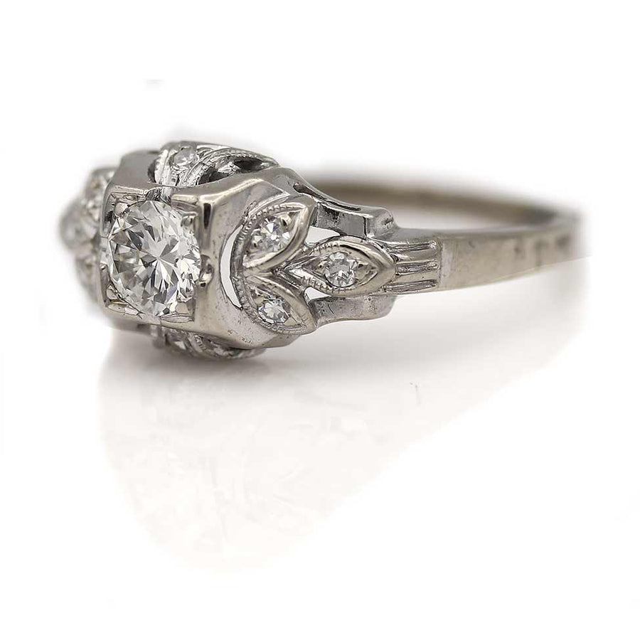 Art Deco .37 CTW Old European Diamond 18 Karat Antique Engagement Ring Jabel