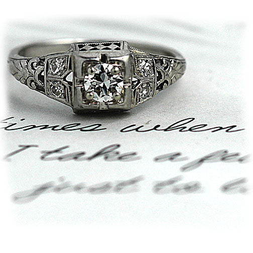 Art Deco .43 CTW Low Profile Platinum Diamond Antique Engagement Ring