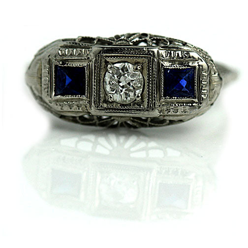 Art Deco .45 CTW European Cut Antique Engagement ring with Sapphire Side Stones