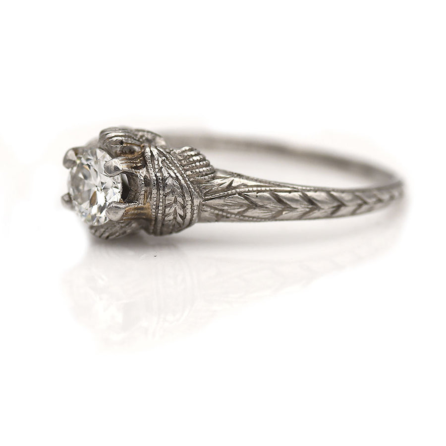 Art Deco .45 CTW Old European Cut Diamond Solitaire Antique Engagement Ring
