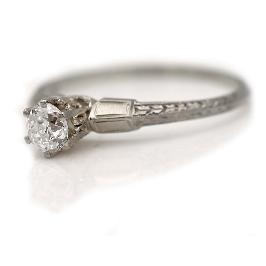 Old European Cut Diamond Ring – One of the most popular but relatively conservative shapes, old European cut diamonds symbolize purity, eternity, wholeness, and unity with their timeless elegance. Create your own history by finding the perfect vintage engagement ring to symbolize your happily ever after.