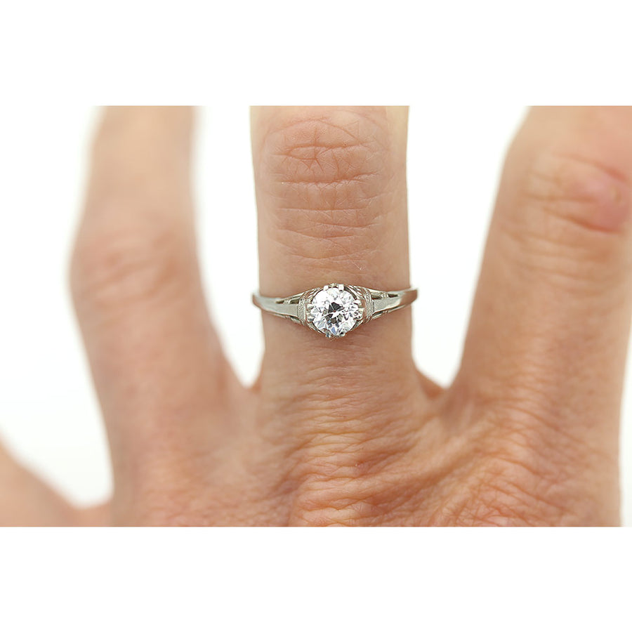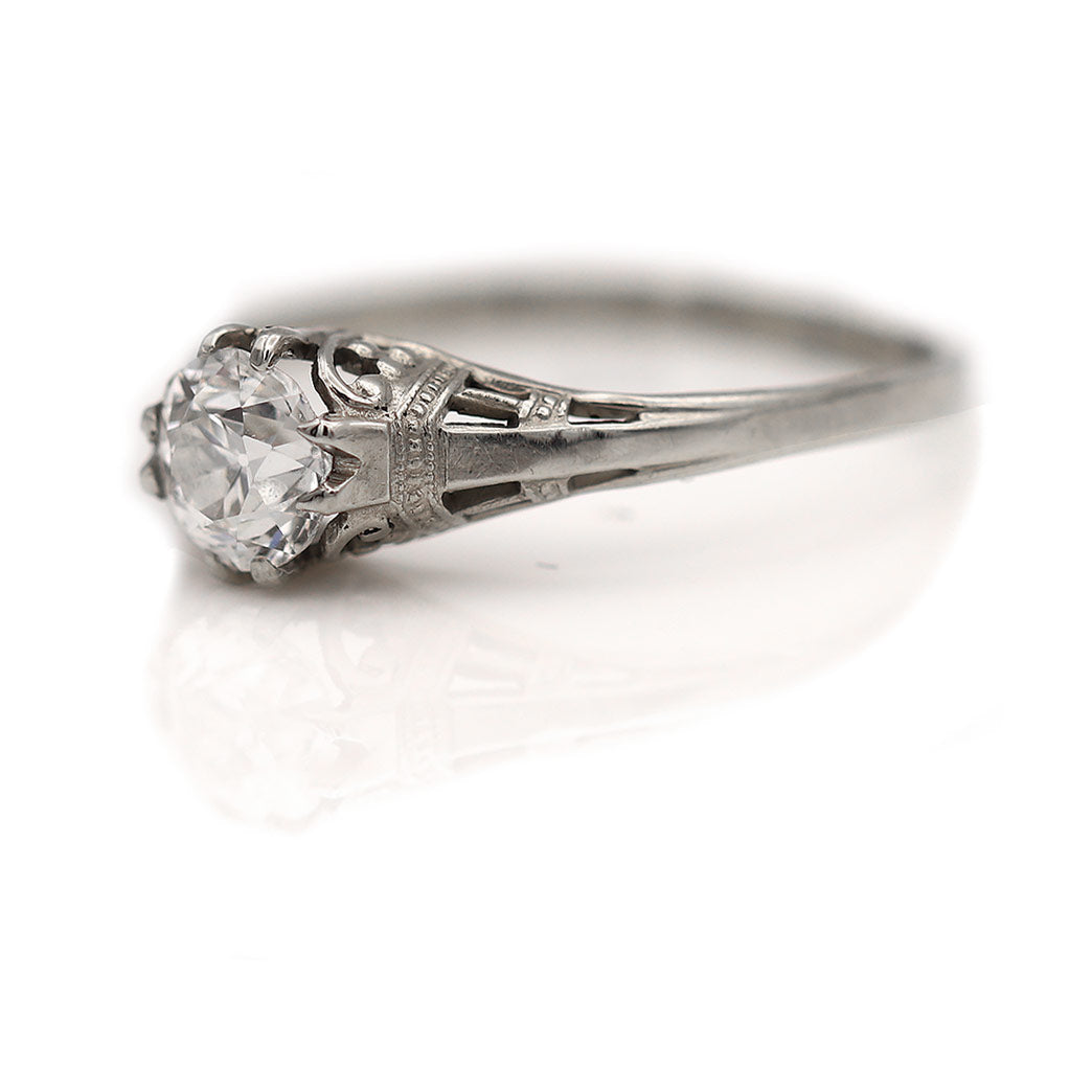 Art Deco .55 Carat Old European Cut Diamond Solitaire Antique Engagement Ring
