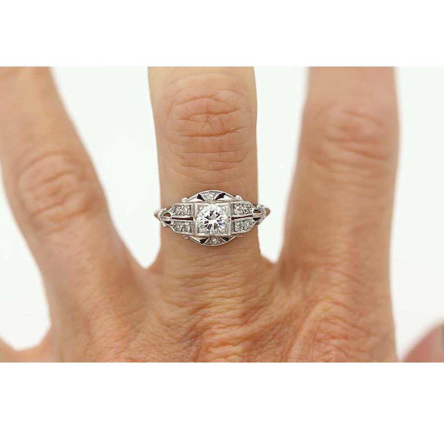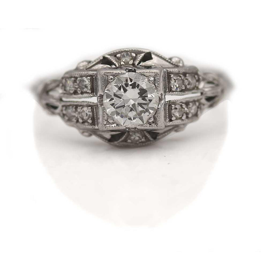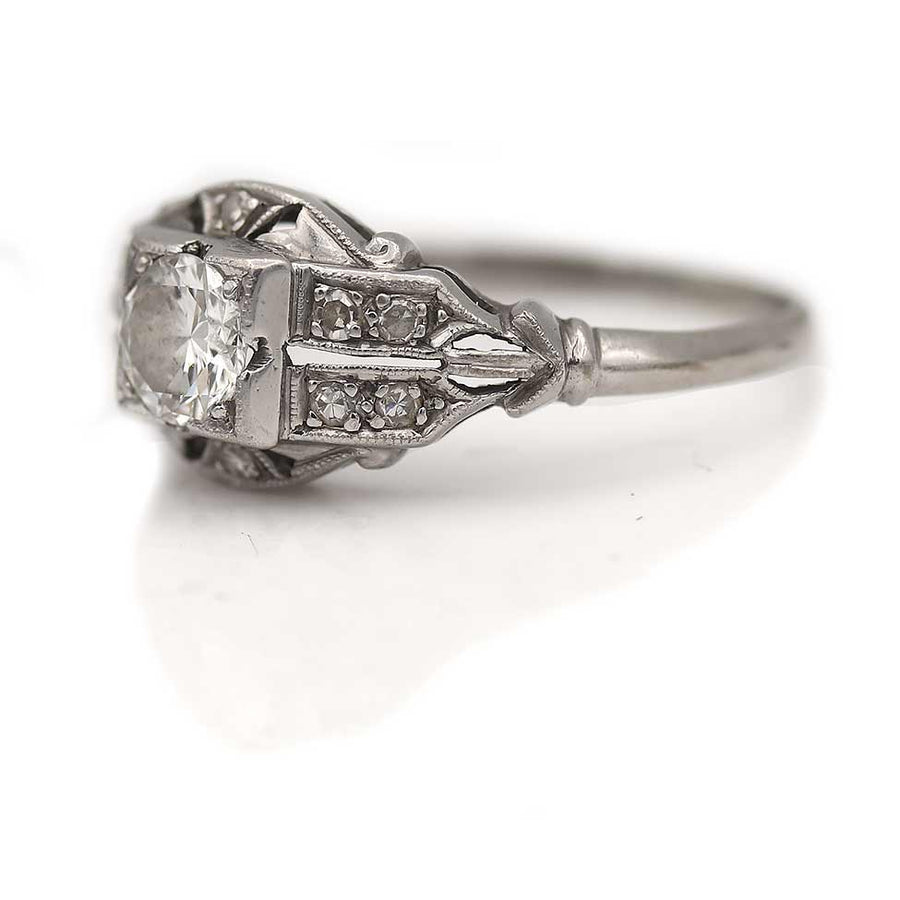 Art Deco .70 CTW Platinum Euro Cut Diamond Antique Engagement Ring