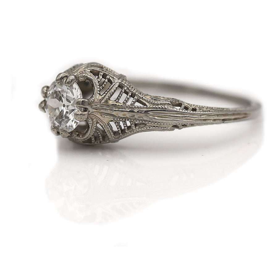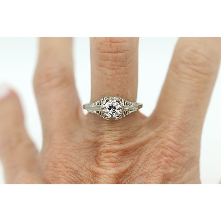 Art Deco .71 CTW Solitaire Diamond Antique Engagement Ring GIA I/VS1
