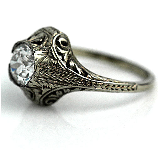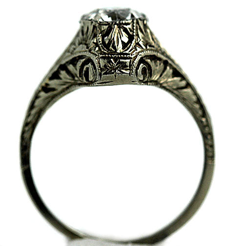 Art Deco .80 CTW Old Euro Diamond Solitaire Vintage Engagement Ring