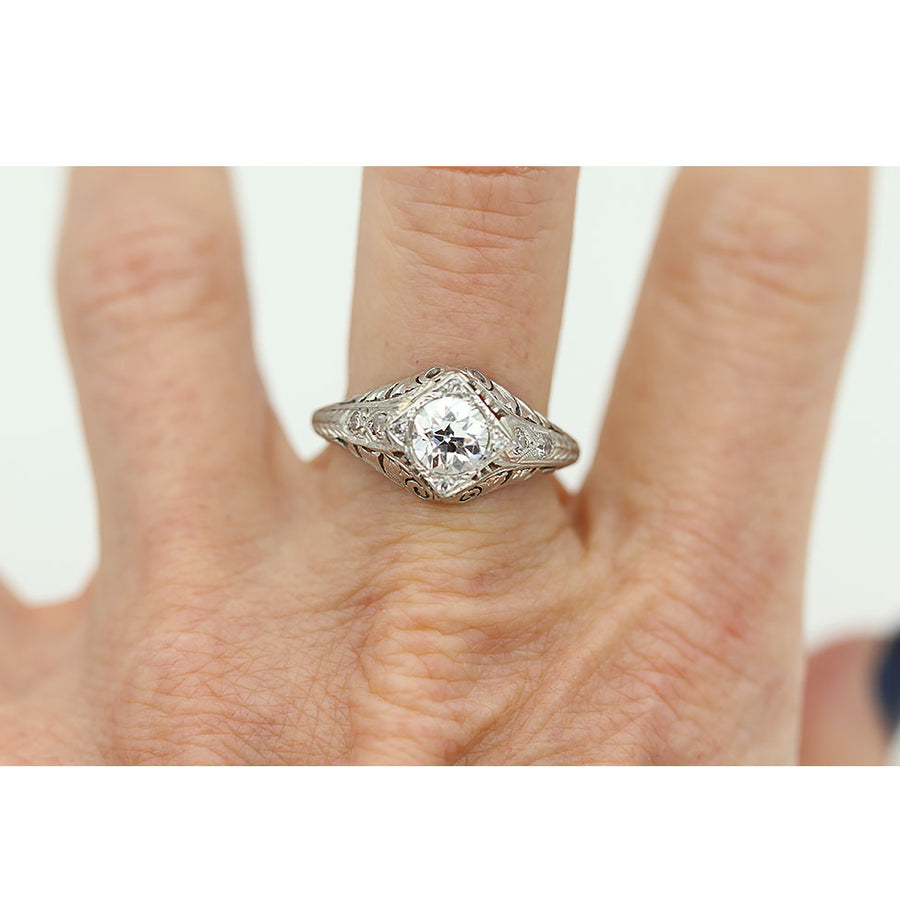 Art Deco .97 CTW Diamond Platinum Vintage Diamond Engagement Ring GIA G/VS2