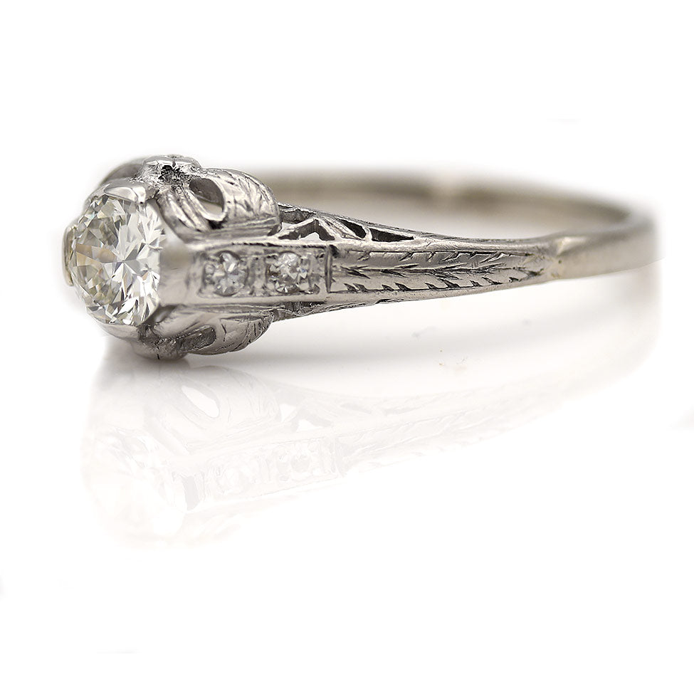 Art Deco Intricate .65 CTW Diamond Antique Engagement Ring GIA I/VS1